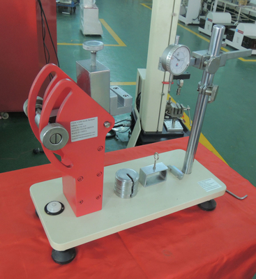 The insole backpart stiffness tester is used to testing the stiffness in the longitudinal direction of steel shanks used for the reinforcement of the waist region of shoes.The shank is clamped at its heel end and bent as a cantilever beam by masses added to its forward end.