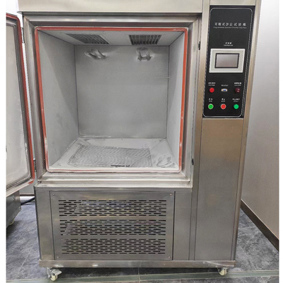 Environmental Test Chamber is a top-of-the-line benchtop environmental test chamber designed to provide precise control of temperature, humidity, dust and oscillating tube. It is equipped with advanced programmable controllers and multiple safety protection functions, like leakage protection and short circuit protection. The relative humidity can range from 45% to 75%, and the temperature range from Rt+10 to 70°C, while the oscillating tube control can be set to ±60°, ±90°, and ±180°. Dry Talcum Powder can also be used for dust testing. For further instructions, customers can refer to the manual when ordering.